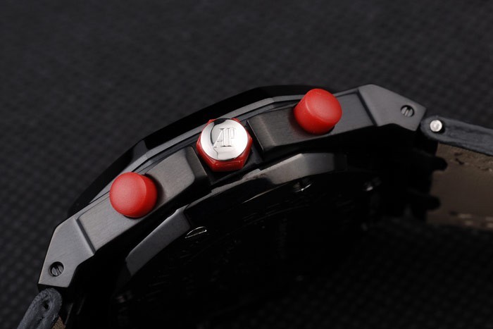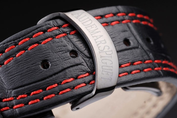 Armband ionenplattiert: Hitze Audemars Piguet schwarzem Krokolederarmband mit Doppel roten Nähten geprägt und Audemars Piguet graviert-Ionen-plattiert Einfalt-clasp