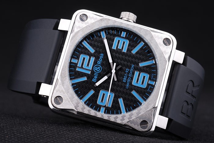 Armband: Bell & Ross-Logo und Produktcode schwarzes Kautschukband mit Edelstahl-Haken-Schnalle clasp