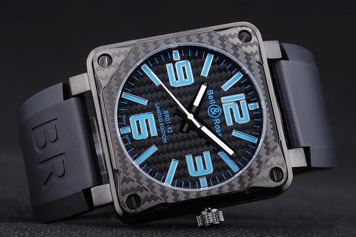 Armband: Bell & Ross-Logo und den Produktcode mit Ionen- schwarzen Kautschukarmband geprägt vernickelt Haken-Schnalle clasp