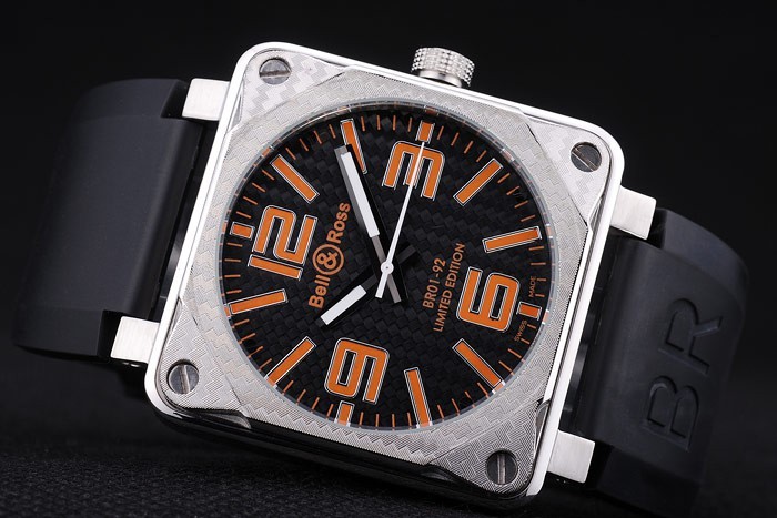 Armband: Bell & Ross-Logo und Produktcode schwarzes Kautschukband mit Edelstahl-Haken-Schnalle clasp