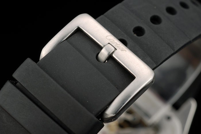 Armband: Schwarzes Kautschukband mit Cartier einbeschriebenen Edelstahlhaken-Schnalle clasp