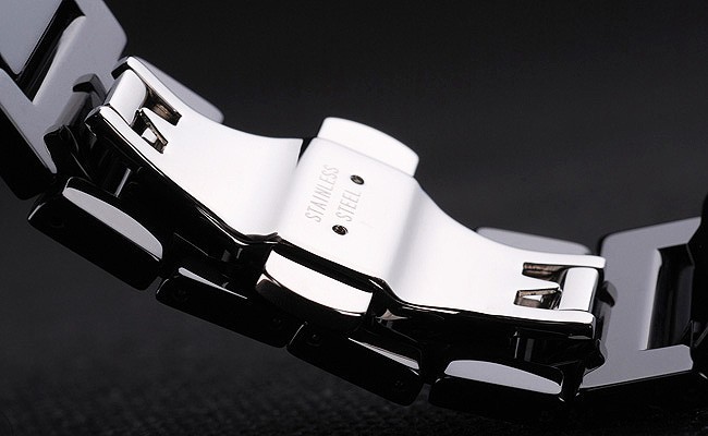 Lünette: 440 Edelstahl, graviert, in schwarzem Kunststoff beschichtet.