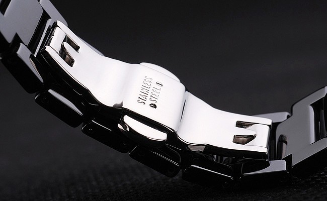 Lünette: 440 Edelstahl, graviert, in schwarzem Kunststoff beschichtet.