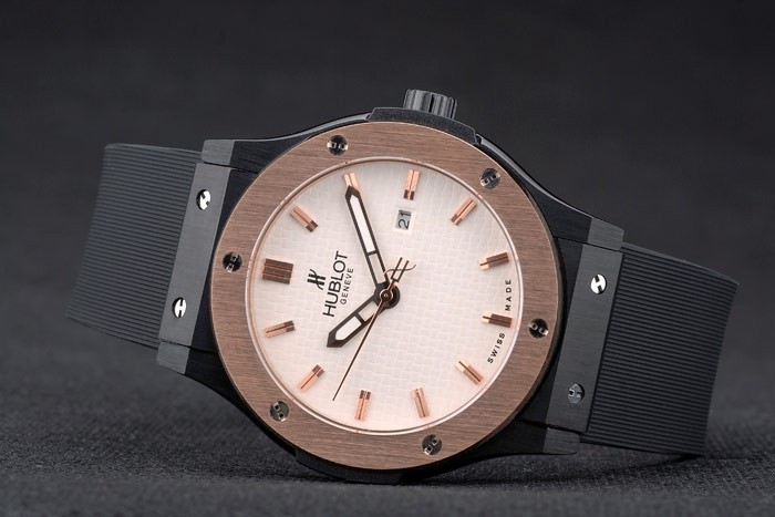 Armband: Hublot Geneve Hitze geprägt gerippten schwarzen Kautschukarmband mit Hublot Geneve gravierten ionenplattiert Push-Release Haken clasp