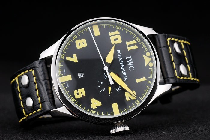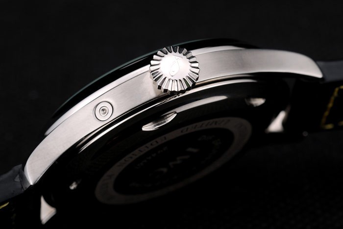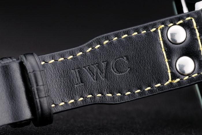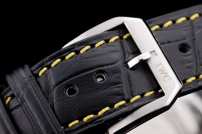 Armband: IWC Hitze geprägt schwarzem Krokolederarmband mit gelben Fadenheftung und graviert gebürstetem Edelstahl Haken-IWC clasp