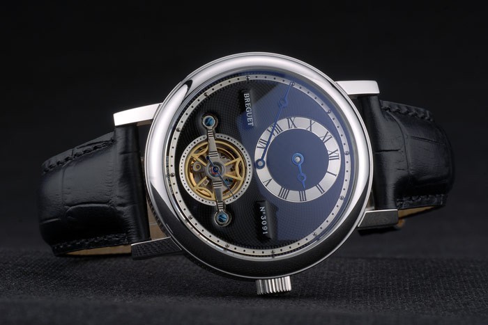 Armband: Breguet Hitze geprägt schwarzem Krokolederarmband mit gravierten Brequet poliertem Edelstahl Einfalt-Haken-Schnalle clasp