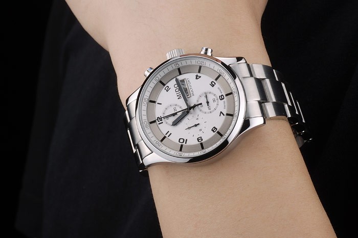 Die Mido Multifort ist sehr angenehm zu tragen. Die Edelstahl-Lünette und das weiße Zifferblatt sind perfekt für den Sommer.
