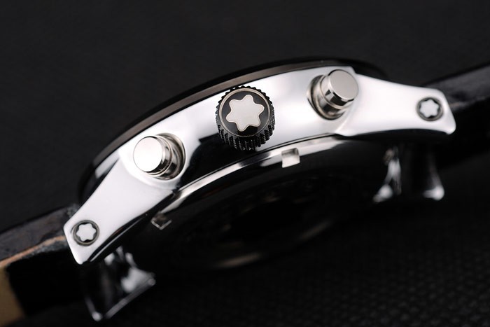 Krone: ionenplattiert cutwork Krone mit Montblanc-logo und zwei polierten Edelstahl Druckknopf Kronen auf entweder Seite it