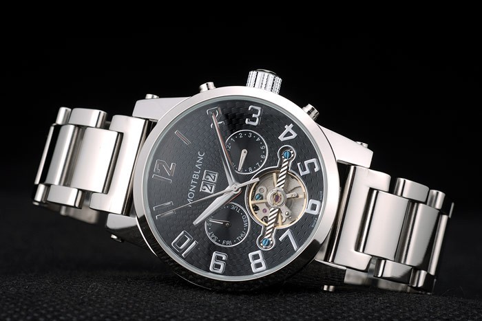 Krone: Edelstahl poliert cutwork Krone mit Montblanc-logo und zwei polierten Edelstahl Druckknopf Kronen auf beiden Seiten des it