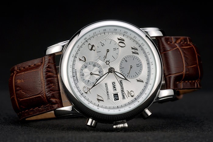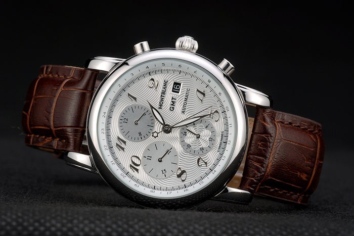 Krone: Edelstahl poliert gerundet cutwork Krone mit Montblanc-logo und zwei polierten Edelstahl Druckknopf Kronen auf beiden Seiten des it