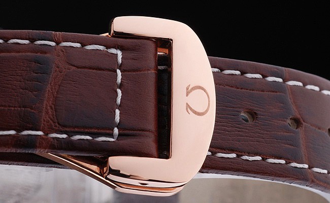 Armband: Brown-Krokodillederband mit weißen Nähten und Omega-Logo eingraviert Gelbgold Haken-Schnalle clasp