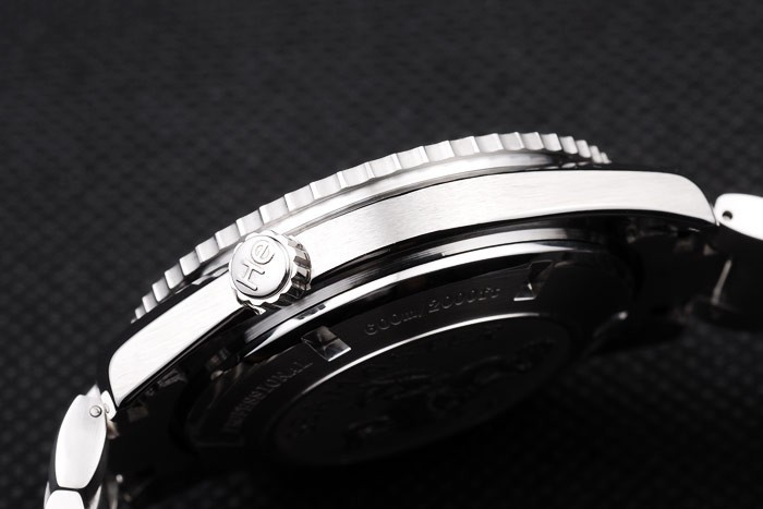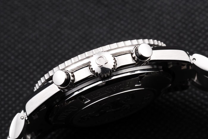 Krone: Edelstahl gebürstet cutwork Krone mit Omega-logo sowie eine zusätzliche Krone auf der gegenüberliegenden oberen corner