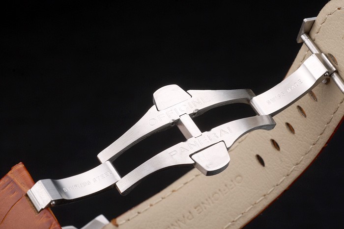 Armband: Braunes Lederarmband mit Wärme geprägt Officine Panerai Italien Stempel und gebürstetem Edelstahl Einfalt-Haken Verschluss mit Panerai engraving