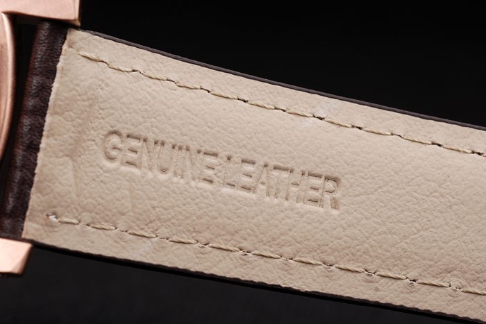 Armband: Braunes Lederarmband mit weißen Nähten und Wärme geprägt Luminor Panerai Stempel und 18k Rose vergoldet Haken-Schließe mit Panerai engraving