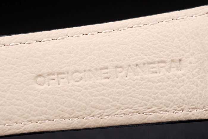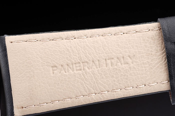 Armband: Schwarzes Krokolederarmband mit weißen Nähten und Wärme geprägt Officine Panerai Italien Stempel und poliertem Edelstahl Haken-Schließe mit Panerai engraving