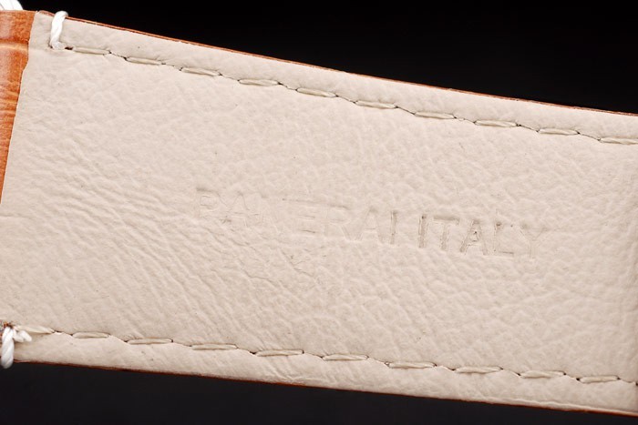 Armband: Brown-Krokodillederband mit weißen Nähten und Wärme geprägt Officine Panerai Italien Stempel und poliertem Edelstahl Haken-Schließe mit Panerai engraving