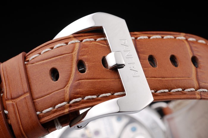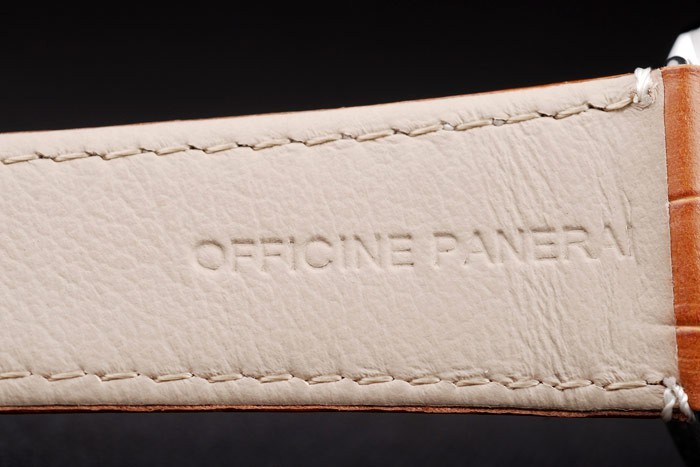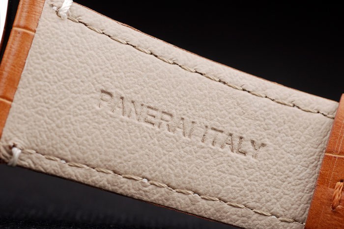 Armband: Brown-Krokodillederband mit weißen Nähten und Wärme geprägt Officine Panerai Italien Stempel und poliertem Edelstahl Haken-Schließe mit Panerai engraving