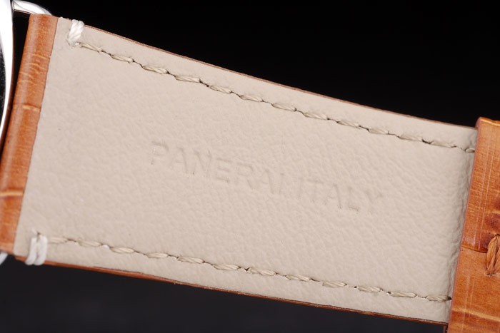 Armband: Brown-Krokodillederband mit weißen Nähten und Wärme geprägt Officine Panerai Italien Stempel und poliertem Edelstahl Haken-Schließe mit Panerai engraving