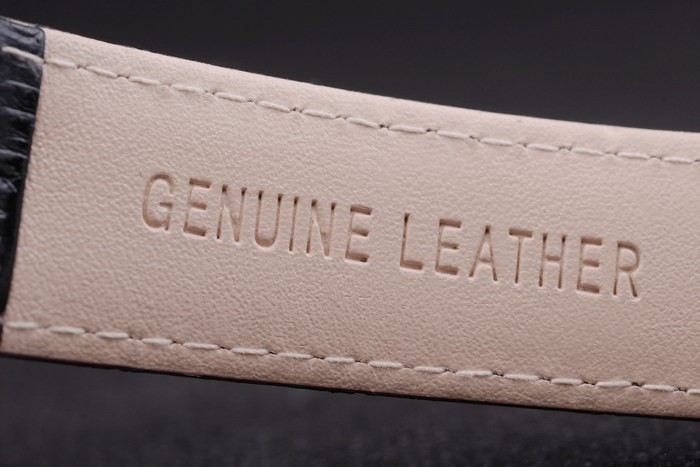 Armband: Schwarzes Lederband mit Patek Philippe Stempel und einem Edelstahl-Falte in clasp