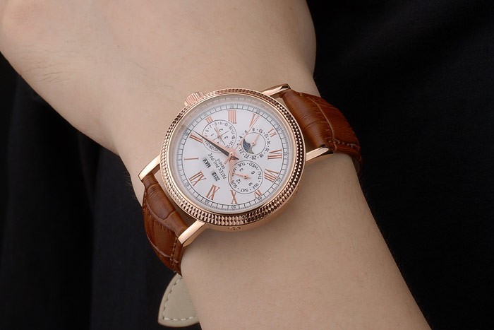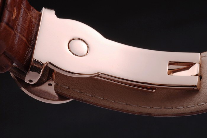 Armband Rose: Braunes Lederarmband mit Patek Philippe Stempel und einer Spange Gold und falten Rosen Patek logo Schnalle