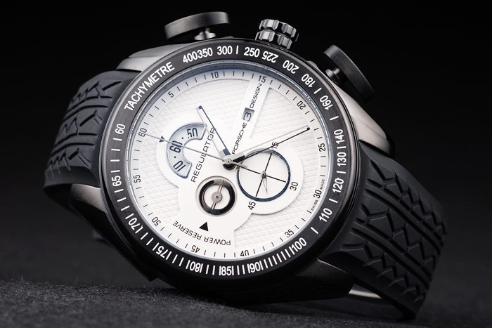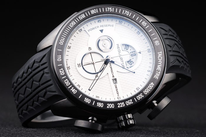 Armband: Reifen-Nut schwarzes Kautschukband mit Hitze geprägten Porsche Stempel und ionenplattiert Haken-Schließe mit Porsche inscription
