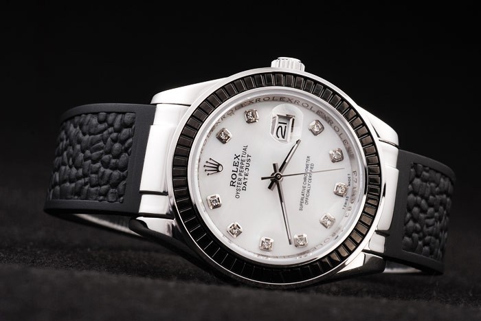 Armband: Entwickelt schwarzes Kautschukband mit Rolex graviert Einfalt-Spange mit Rolex-Logo geschnitzt auf top