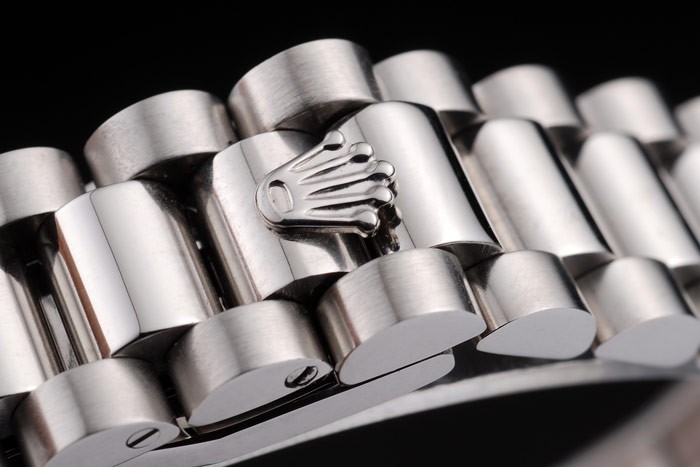 Armband: geschliffener und polierter Edelstahl-Gliederarmband mit Rolex graviert versteckte Spange die Rolex logo