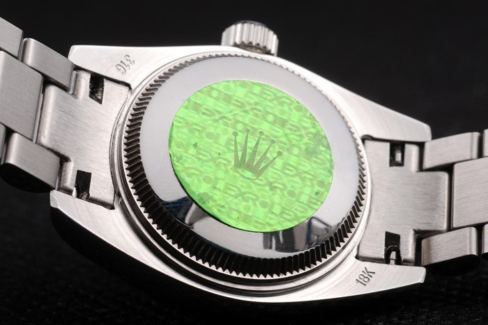 Rückseite: Edelstahl Push-Gehäuseboden mit grünen Rolex-Logo stampGeschlecht: Frauen