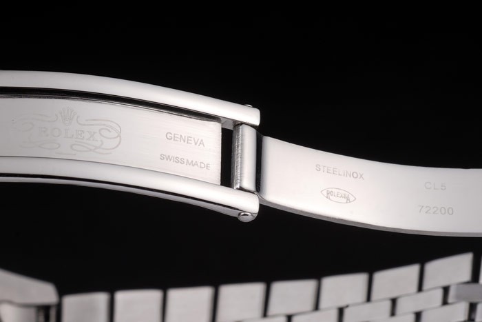 Armband: gebürstetes Edelstahl-Gliederarmband mit Rolex graviert versteckte Spange die Rolex logo