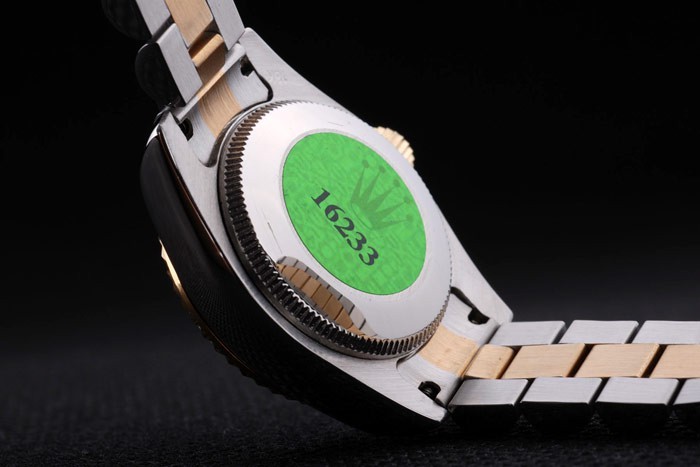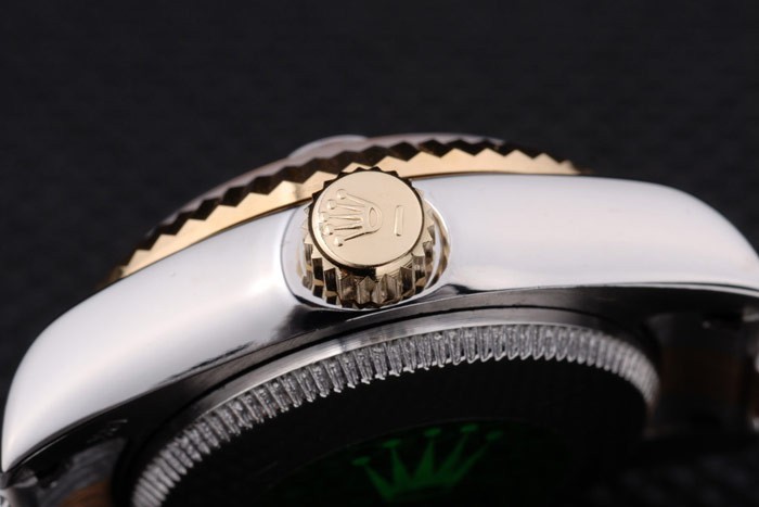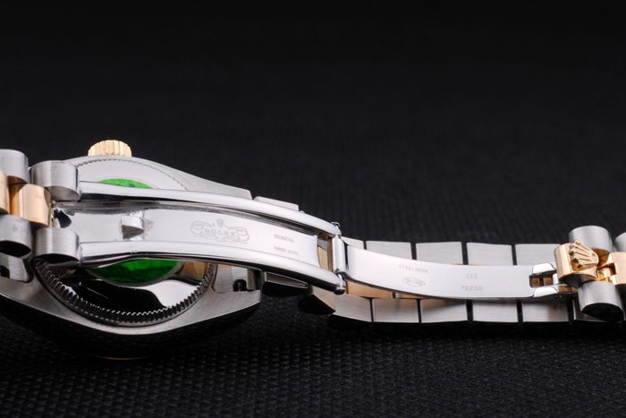 Rückseite: Edelstahl Push-Gehäuseboden mit grünen Rolex-Logo stampGeschlecht: Frauen