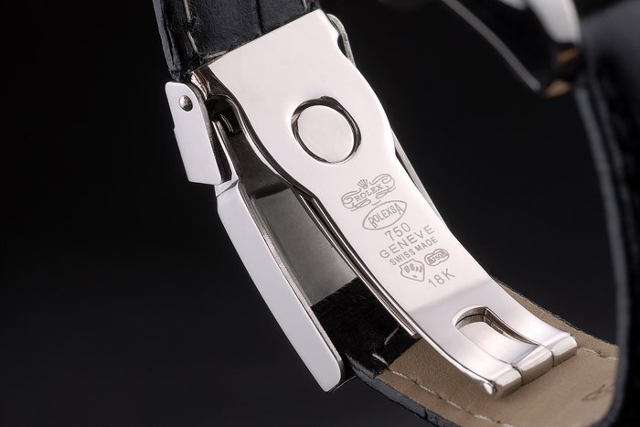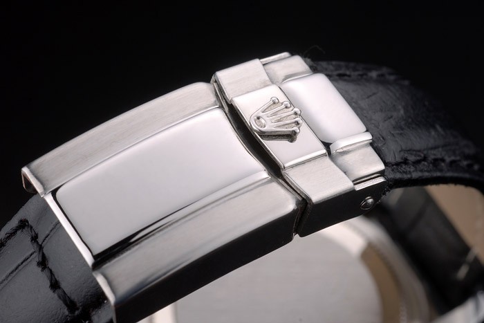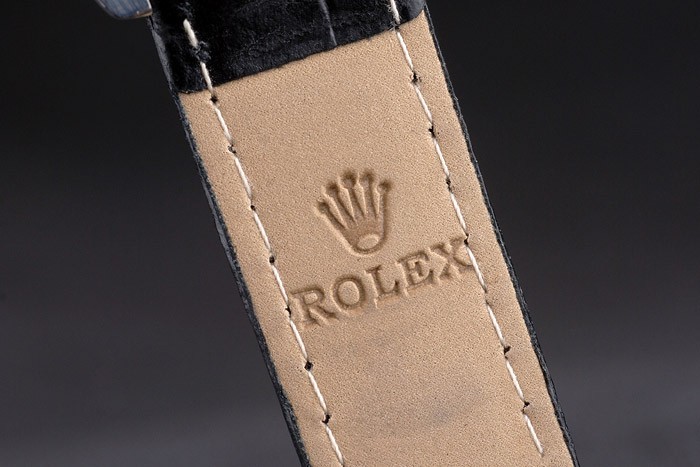 Armband: Rolex Hitze geprägt schwarzem Krokolederarmband mit gravierter Edelstahl Faltschließe mit Rolex-Logo auf top