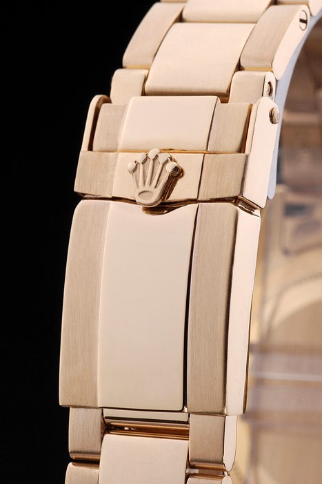 Armband: Gold getönten Edelstahl-Gliederarmband mit Rolex Gravur Faltschließe Rolex Anzeigen logo