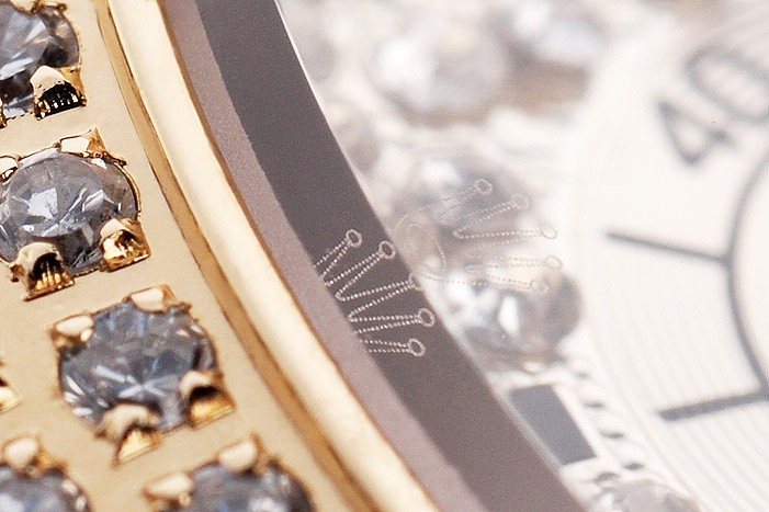 Krone: Goldfarbene cutwork Krone mit Rolex-logo und zwei weitere Kronen auf beiden Seiten it