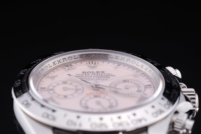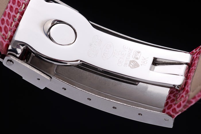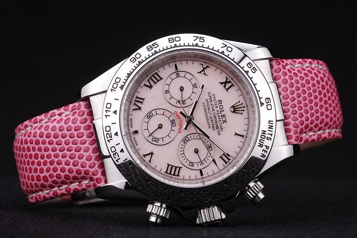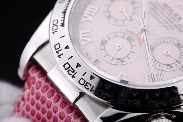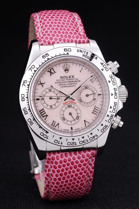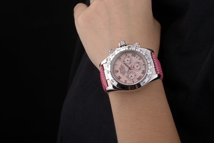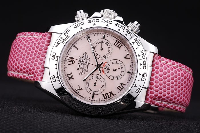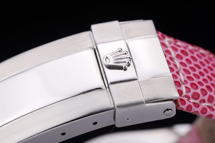 Armband: Rosa Schlange Lederband mit Rolex und Logogravur und Edelstahl Faltschließe Anzeige Rolex logo