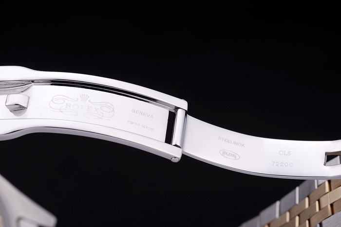 Armband: Edelstahl gebürstet und Gelbgold Gliederarmband mit Rolex-Logo versteckt clasp
