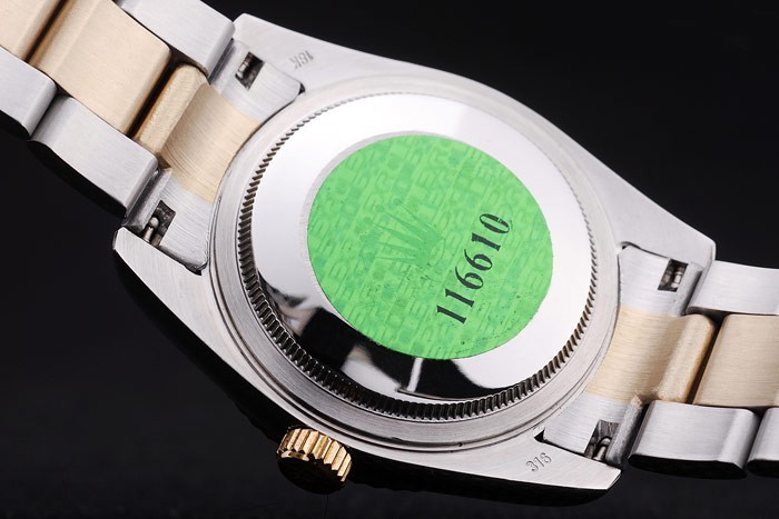 Rückseite: Edelstahl-Snap-In Rückseite mit grünen Rolex Authentizität stickerGeschlecht: Männer
