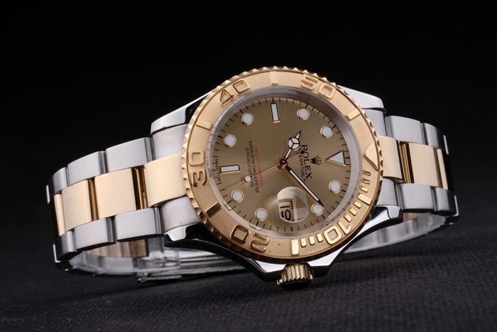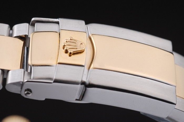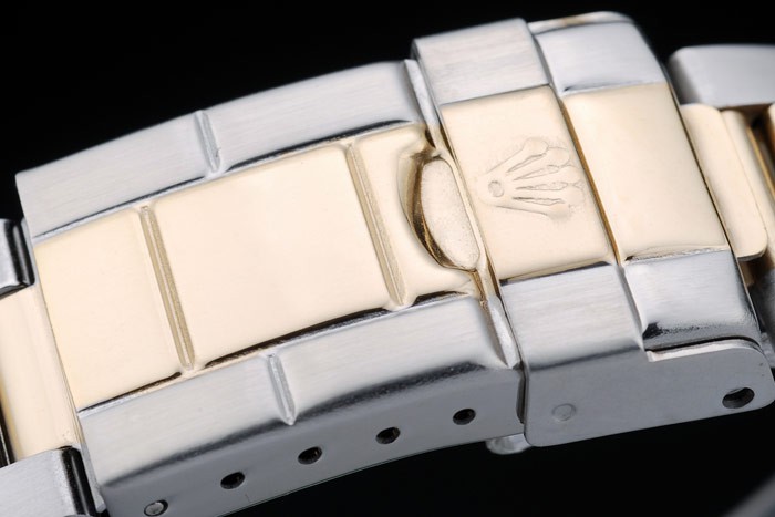 Armband: Zwei getönten geschliffener und Goldton Edelstahl-Gliederarmband mit Rolex Gravur falten Verschluss der Anzeige Rolex logo