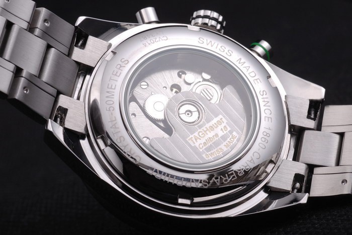 Krone: Edelstahl poliert Krone mit Tag Heuer-logo und zwei kleinere Kronen auf entweder side