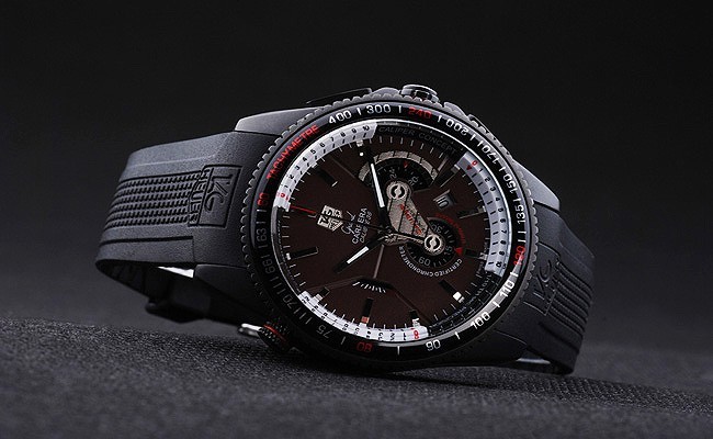Armband: schwarzes Kautschukband mit Wärme geprägt und graviert Haken-Stempel Tag Heuer texturierten clasp