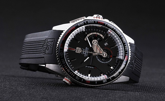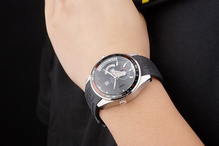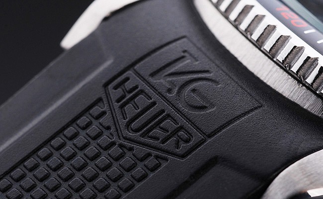Armband: schwarzes Kautschukband mit Hitze Prägestempel Tag Heuer und graviert Haken-Schnalle clasp