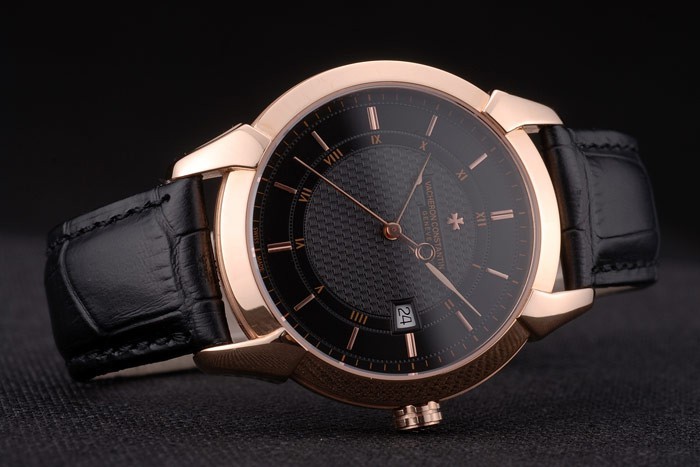 Armband: Hitze geprägt Vacheron Constantin und Logo schwarzem Krokolederarmband mit 18 Karat Rose- vergoldet logo Haken-Schnalle clasp